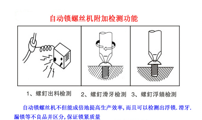 銳翔自動鎖螺絲機構(gòu),全面取代手工抓取螺釘,用送料機直接把螺釘送至螺絲批嘴位置進(jìn)行自動鎖付。螺絲機采用多頭式,坐標(biāo)式等機構(gòu)全面提升自動化效率,都使鎖緊工作變得簡單高效。提高生產(chǎn)效率,提升產(chǎn)品品質(zhì)。